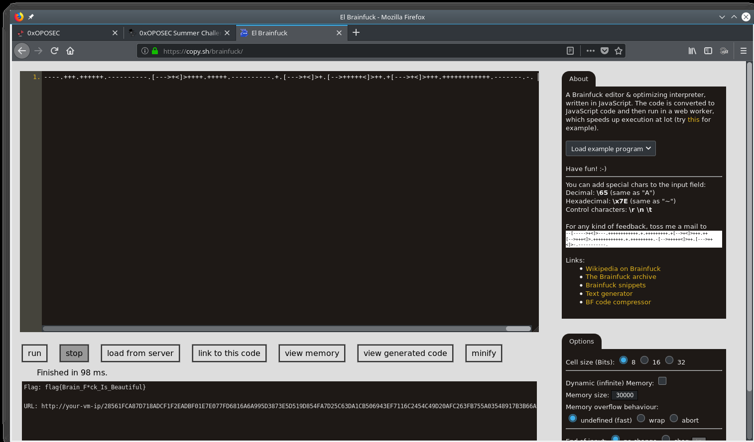 New flag!! flag{Brain_F*ck_Is_Beautiful} and new URL to follow.