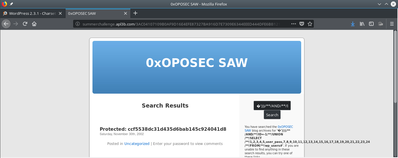 The Wordpress present on the page is vulnerable to “Wordpress <= 2.3.1 Charset Remote SQL Injection”.