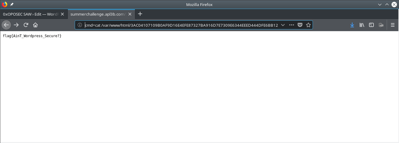 Flag!!!! flag{AinT_Wordpress_Secure?}.