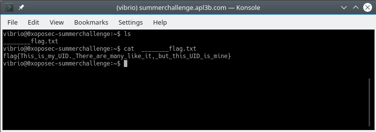 Another flag!!! flag{This_is_my_UID._There_are_many_like_it,_but_this_UID_is_mine}.