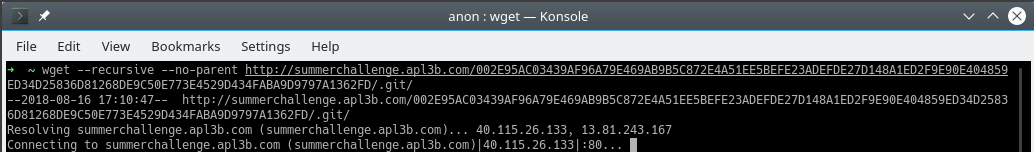 wget --recursive --no-parent http://summerchallenge.apl3b.com/002...FD/.git/