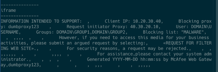 It means that every time you try to open a malicious page inside a network, you get the same “protected” webpage rendered by the enterprise proxy, which includes all this detailed information.