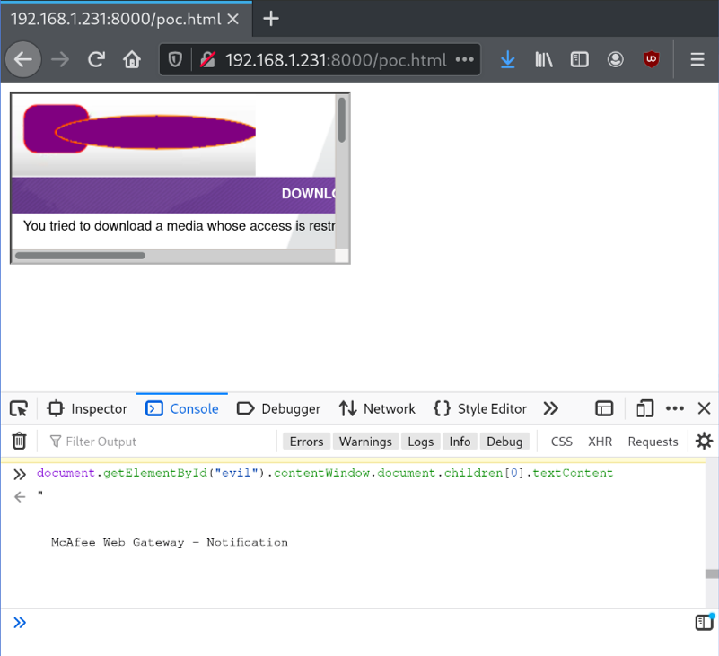 You may be wondering, but… since the proxy is just replacing the HTTP reply, that “blocking message” is part of the same page that is on the same domain, which means that you can access iframe contents via JavaScript.